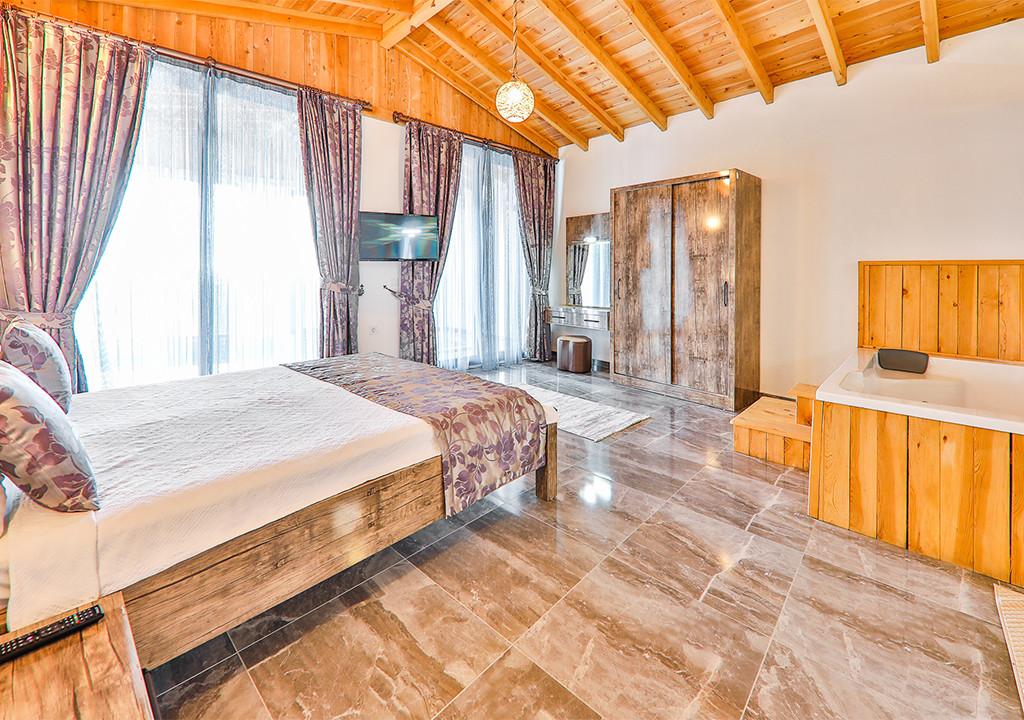 Double bed, Vanity table, Bedside table, Air conditioning, Wardrobe, Jacuzzi, Bathroom and toilet.