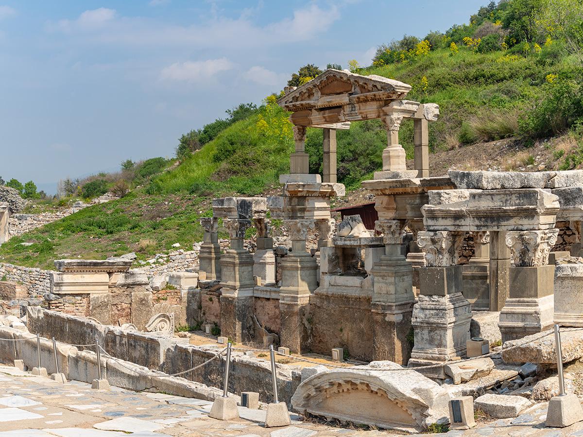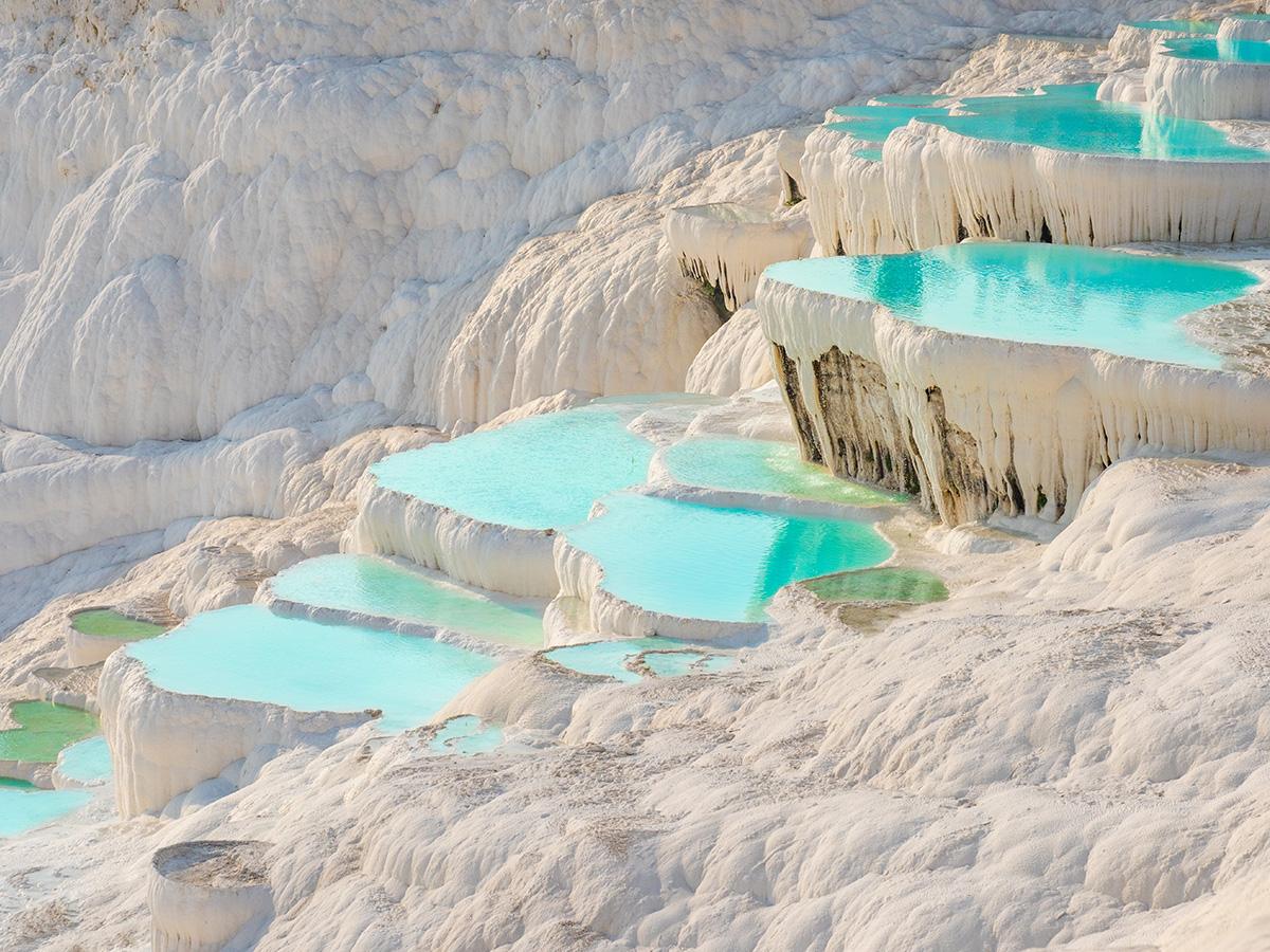 The journey continues to Ephesus, one of the best-preserved ancient cities in the world, where marble streets, temples, and libraries reflect the glory of the Roman era. From there, travel to Pamukkale, famous for its white travertine terraces and the ancient city of Hierapolis.